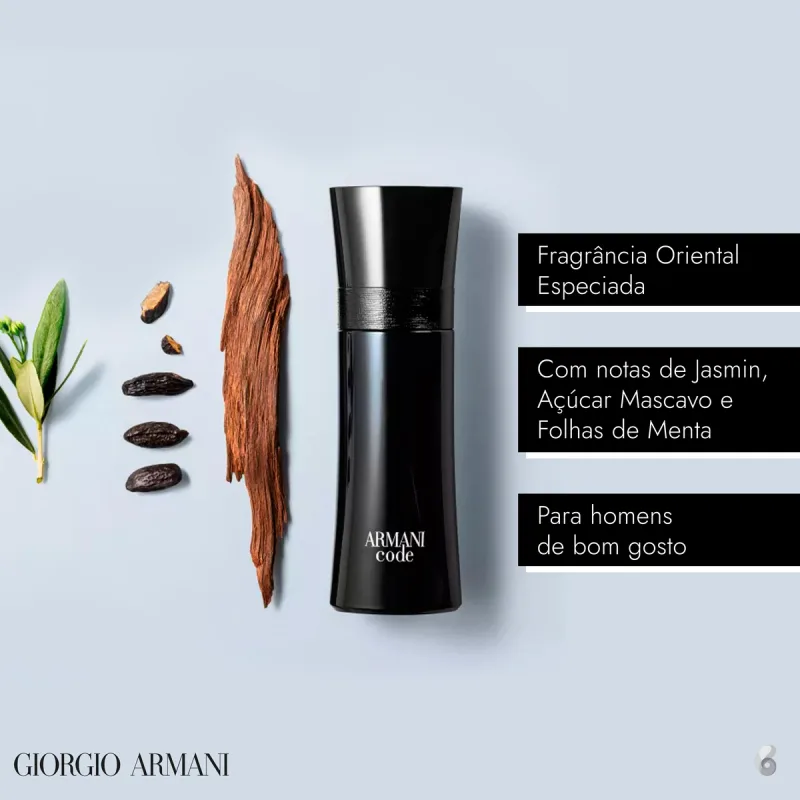 Armani Code é um perfume Giorgio Armani masculino oriental especiado. É uma fragrância para o universo VIP feito para homens de bom gosto.