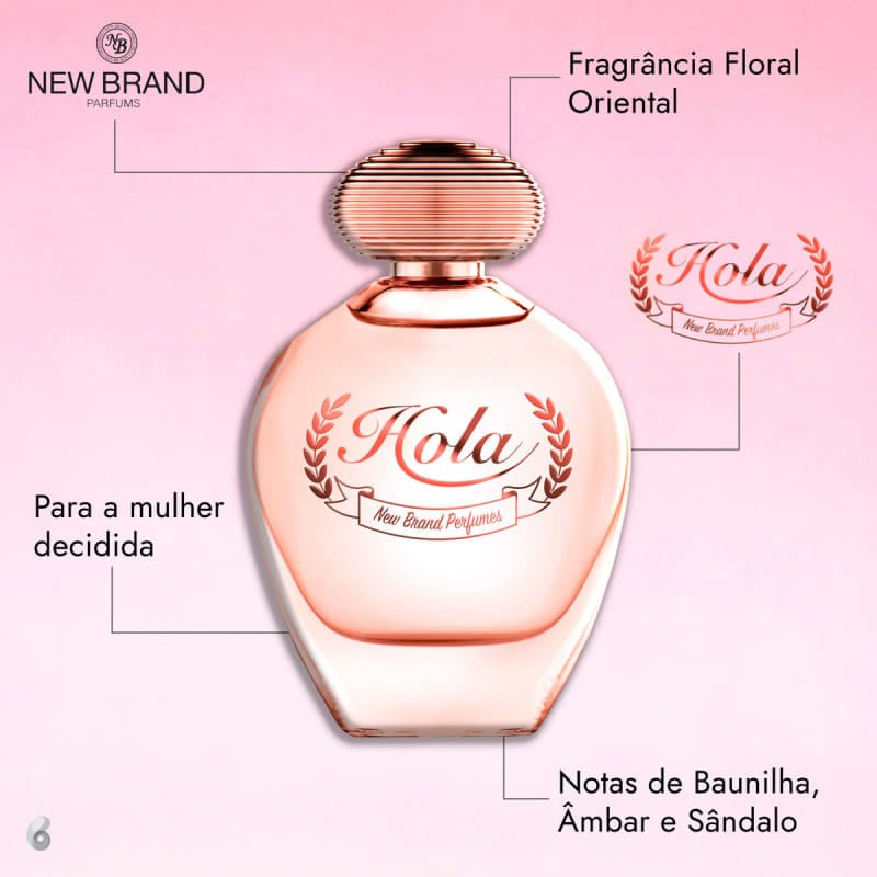 Hola é um perfume New Brand feminino floral oriental. Celebra a liberdade feminina e representa o total poder de escolha da mulher que não tem medo de conquistar o que (e quem!) deseja.